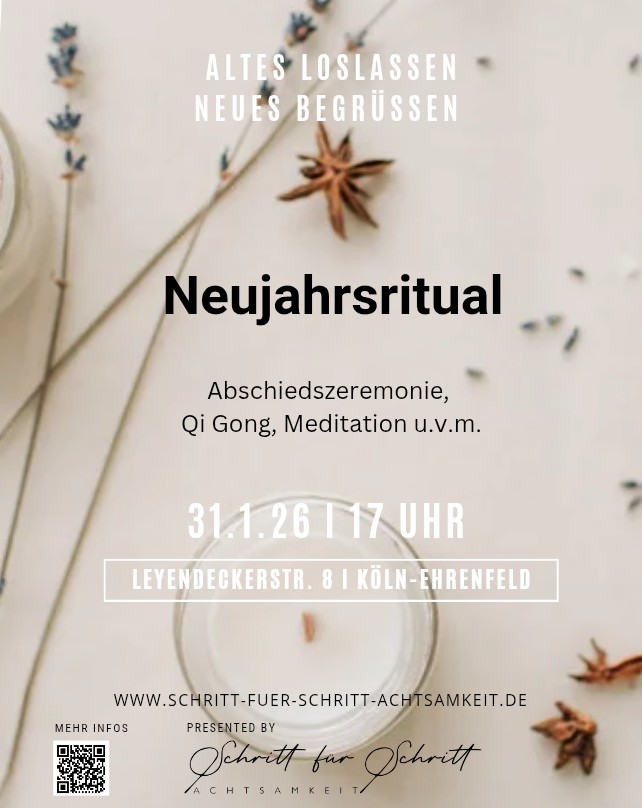 Das ‚Stille Nacht Neujahrsritual‘: wir verabschieden das alte Jahr (und evtl. alte Muster) und richten uns (neu) auf 2026 aus. Wir treffen uns um 17 Uhr, Leyendeckerstraße 8, Logopädische Praxis. Dauer: ca. 1,5 Std., Beitrag: 20 € Bite hier anmelden.